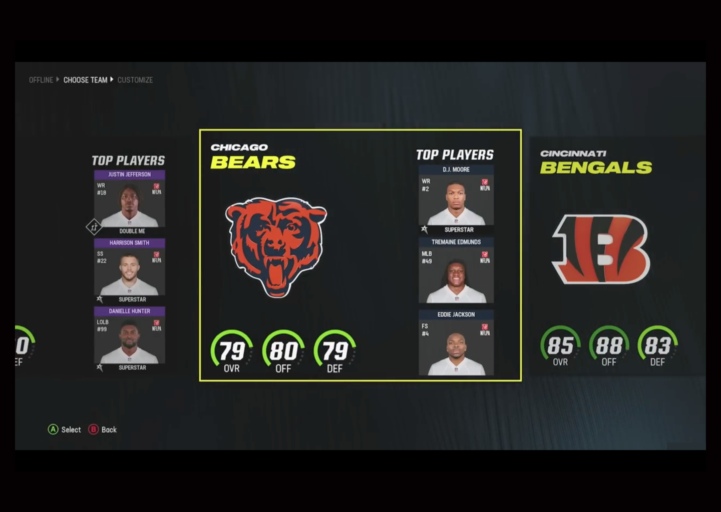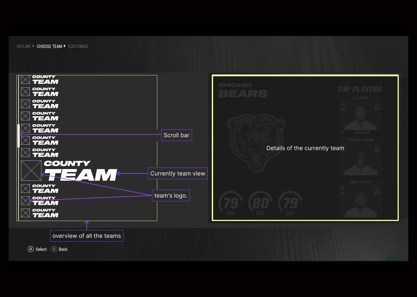 The analysis that I have carried out has been specifically in the ¨Franchise Mode¨ screen where we select the team we are interested in, we observe the team we have selected, the previous one and the next one.