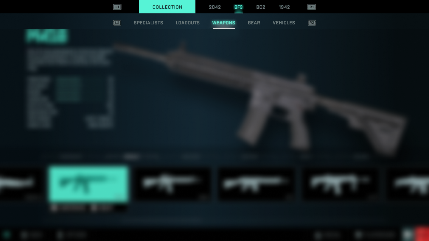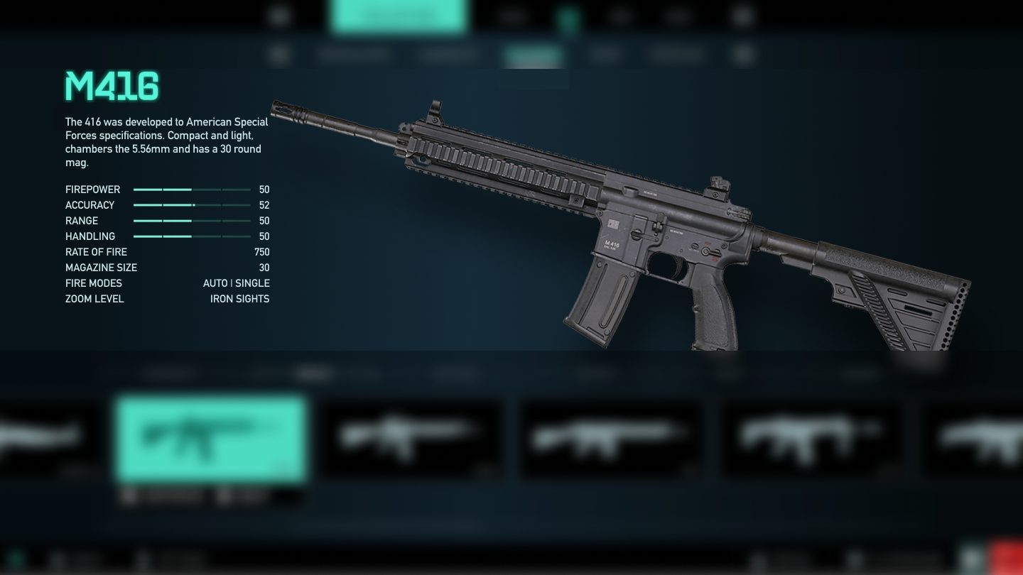 Finally we have a tab bar where we select the type of weapon and it will show us which ones we can choose within this one.